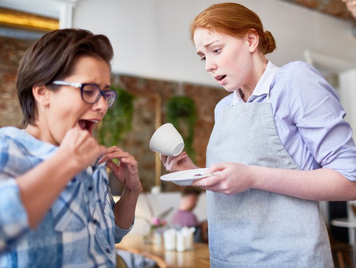 “Woman comes to the counter at a fast food restaurant and berates me for under-cooking her beef patty. The patties are all cooked on a timer, and the meat looked normal. She nagged and complained for at least twenty minutes. Finally, we remade her entire order and handed her the tray. She screams some more, turns around, and then immediately trips and falls, all of her food and drink spilling everywhere.