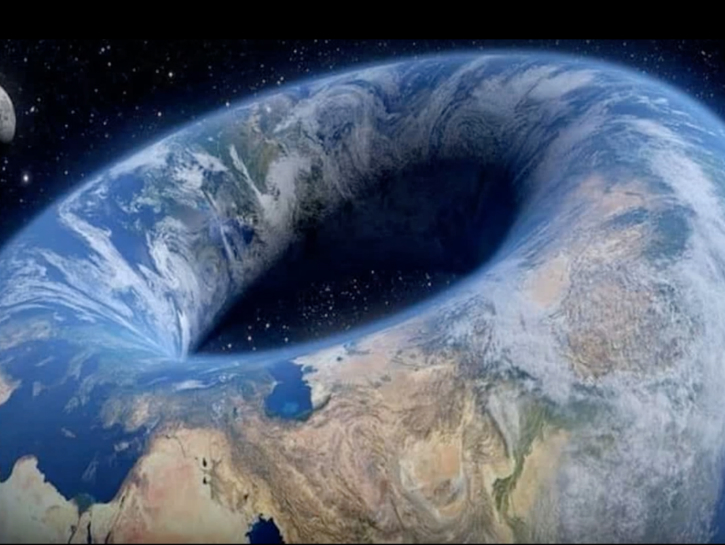 Indeed, this idea actually did begin as a conspiracy parody in 2008 when someone known as Dr. Rosenpenis started a thread on FlatEarthSociety.org suggesting the donut shape theory as a joke. But not everyone was in on the joke, including commenter Varaug, who took the theory and ran with it until a fully realized “postulation” had developed by 2012. Varaug’s analysis states that Earth does not appear torus-shaped to us Earthlings because “light bends and follows the curvature of the torus, making the hole ‘unseeable.'”